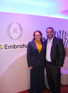 Andre Bento, presidente da Neltur, e a Diretora de Turismo, Fábia Trezim, na BTL em Portugal