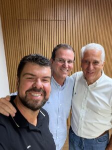 O líder do Cidadania e ex-deputado estadual Comte Bittencourt, aniversariante da semana, com o presidente regional do Cidadania e prefeito de Macaé, Walber Rezende, selando acordo com Eduardo Paes, pré-candidato ao Governo do RJ.